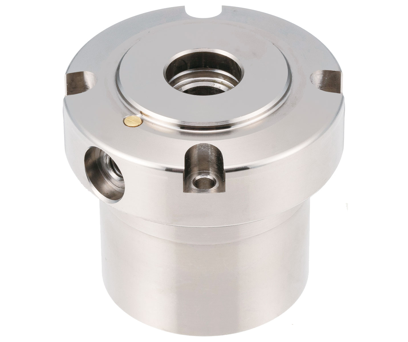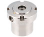 This convenient light-duty pneumatic locator module is part of a Flex locating system that enables high-precision positioning and can be utilized for quick change in machining operations. For fixture plate changeover this module is mounted to a base plate and a clamping pin is attached to the fixture plate. This is a single-acting clamp with the air used only for unclamping. Supplying air allows the tapered piston to rise and loosens the balls that hold the pin. Clamping is maintained by spring force even without air supply. Releasing air allows the spring to push down the tapered piston to pull down the clamping pin. Provides 0.06 mm accuracy. Only 0.3 Mpa air pressure is required for operation. This module has two unclamping ports for unclamping. Used with the clamping pins listed in the table. Body made from electroless nickel-plated 4140 steel. Balls made from stainless steel.