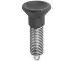 These spring loaded hand retractable plungers are used to prevent any change in locking position due to lateral force. Pulling up on the handle retracts the plunger pin into the body. The body and plunger are made from steel with a black oxide finish. The pin plunger pin is ground and hardened. Screw-in washers to install the plungers are available separately. The knob is made from black plastic.