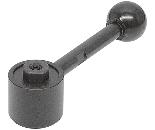 The cam is made from 4140 alloy steel. The piston is made from 1045 alloy steel. Parts are heat treated with a black oxide finish. The handle knob is made from black plastic.