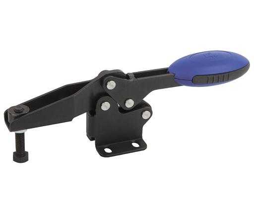 Kipp toggle clamps offer a high quality, durable alternative to standard toggle clamps. The non-slip ergonomic handle allows for easy and comfortable use with smooth edges to prevent snagging. These clamps feature high quality bushings that won’t score and are designed to withstand over 300,000 cycles. They operate very smoothly without slop or play during clamping and unclamping while providing constant operating forces. Their attractive appearance provides a high quality look to finished products. The handle is made from high quality polyamide. The clamp element is nitro-carburized with a non-reflective black oxide finish.