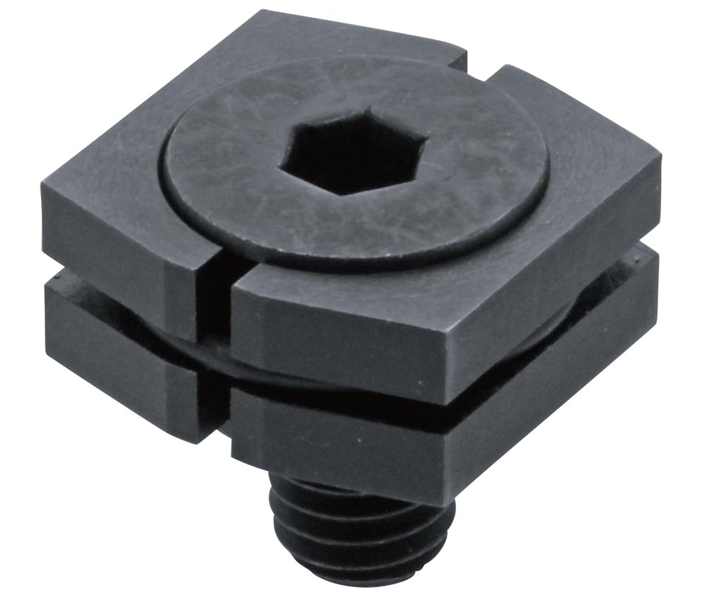 Tightening the hex screw expands the jaws outward and downward, preventing workpiece lift. Clamp two workpieces against fixed stops. The low profile and small size allow for faster set up and more parts per load. CP132-A uses a countersunk head screw. CP132-B uses a socket head cap screw. The jaws are made from SNCM439 steel, HRC33-39, with a black oxide finish. The washer is made from 4135 steel with a black oxide finish. The O-ring is made from fluoro rubber.